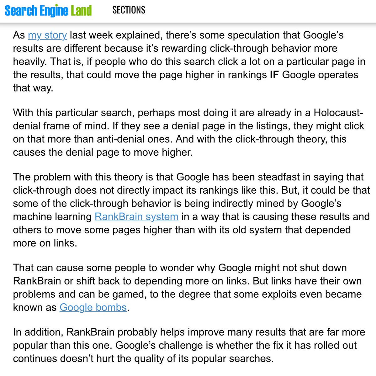 There's also an argument that Google's use of AI in past two years has lead to its current search woes http://searchengineland.com/googles-results-no-longer-in-denial-over-holocaust-265832 … pic.twitter.com/BovvYIysui