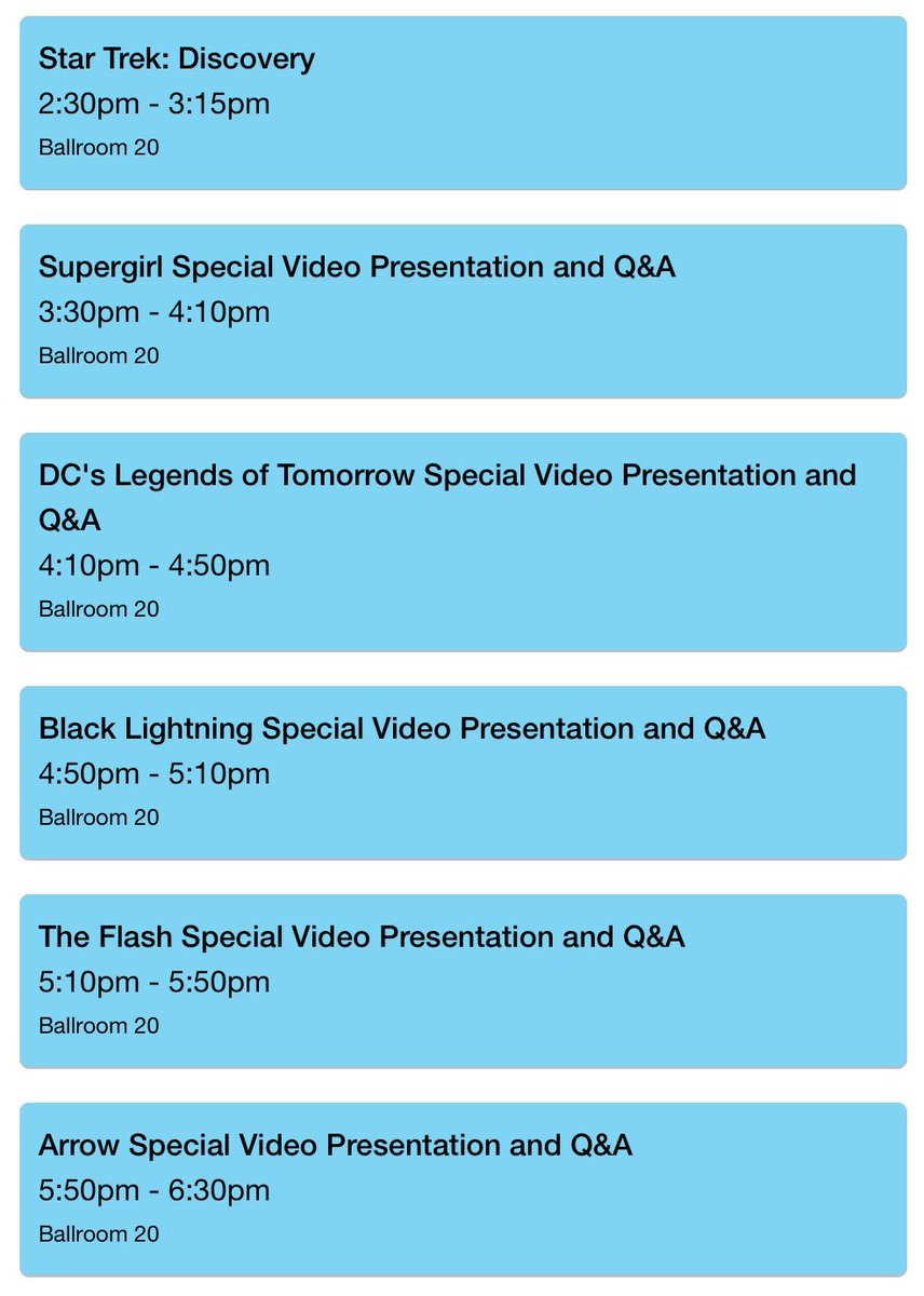 I might need to be a Ballroom 20 person on #SDCC Saturday. Beacuse @startrekcbs & all the @TheCW goodness! pic.twitter.com/5pB52Vc8Kg