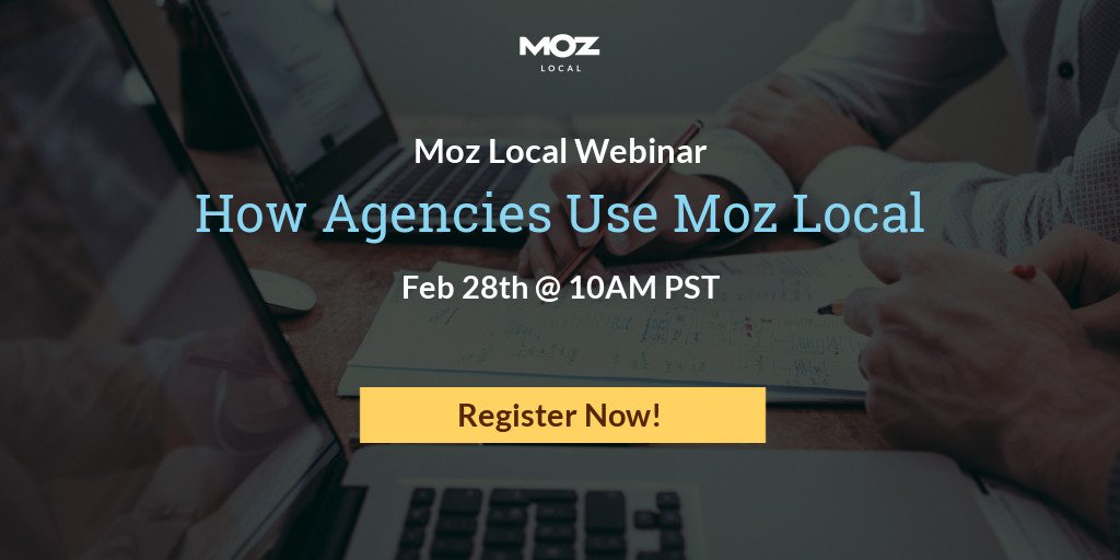 How do agencies use our toolset to solve complex marketing challenges? Join our webinar to find out! Registration is available here: http://mz.cm/2nGlGUu #mozlocal #webinar #seo pic.twitter.com/CYPo8J0gU4