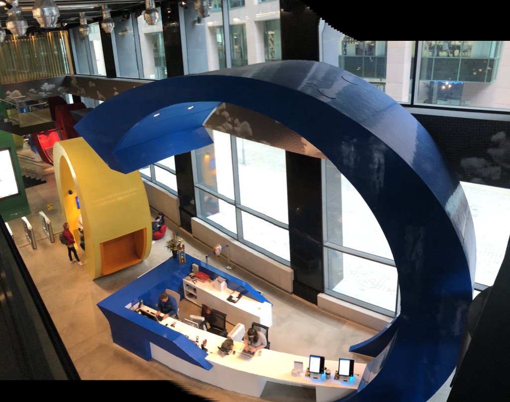 Google Dublin has a pretty cool giant logo that you can sit in, along with the reception desk, pic.twitter.com/vXaGeWscD0